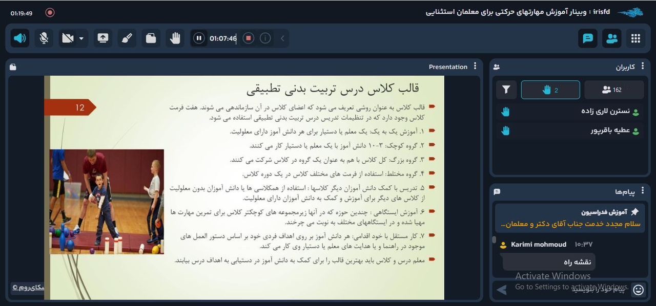 در دومین جلسه که از ساعت ۱۰ تا ۱۲ بهصورت آنلاین برگزار شد، دکتر امید جهانسوز «عضو هیئت علمی دانشگاه فرهنگیان و از چهرههای علمی برجسته حوزه ورزش توانیابان » به ارائه مباحث تخصصی پرداخت.