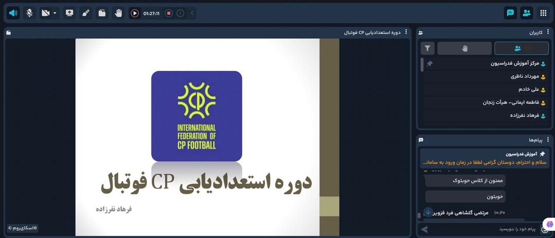 به گزارش روابط عمومی فدراسیون ورزشهای جانبازان و توانیابان در بخش صبح، از ساعت ۹ تا ۱۲، کارگاه تخصصی استعدادیابی در رشته فوتبال CP با تدریس دکتر فرهاد نفرزاده، از مدرسان باسابقه علمی و عملی این رشته، برگزار گردید. در این بخش، شرکتکنندگان با تازهترین مبانی علمی و کاربردی در حوزه شناسایی استعدادهای فوتبال CP آشنا شدند.