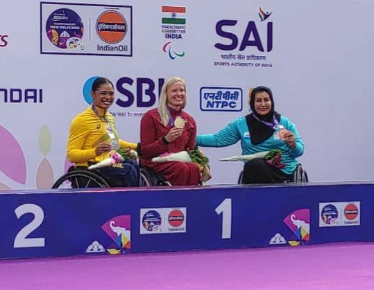 به گزارش روابط عمومی فدراسیون ورزشهای جانبازان و توانیابان، در پنجمین روز از رقابتهای پارادوومیدانی قهرمانی جهان، امروز (چهارشنبه) در ماده پرتاب نیزه کلاس F56، زینب مرادی ملی پوش کشورمان به میدان رفت و در پرتاب نخست خود رکورد 21.85 متر را ثبت کرد. او پرتاب های دوم و سوم خود را از دست داد و در پرتاب های بعدی 20.69 متر، 21.98 متر، 22.06 متر را به ثبت رساند تا با بهترین رکورد خود 22.06 متر عنوان سومی جهان و مدال برنز مسابقات را کسب کند.