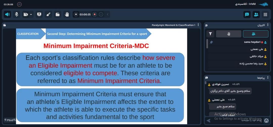 به گزارش روابط عمومی فدراسیون ورزشهای جانبازان و توانیابان، در این نشست علمی، دکتر کیانوش زرگران — فیزیوتراپیست و کلاسبند حوزه ورزش معلولین، به تدریس مباحث تخصصی مرتبط با فرآیند کلاسبندی پزشکی در ورزش پرداخت و تازهترین استانداردهای بینالمللی و چالشهای اجرایی در ارزیابی ورزشکاران دارای معلولیت را تشریح کرد.