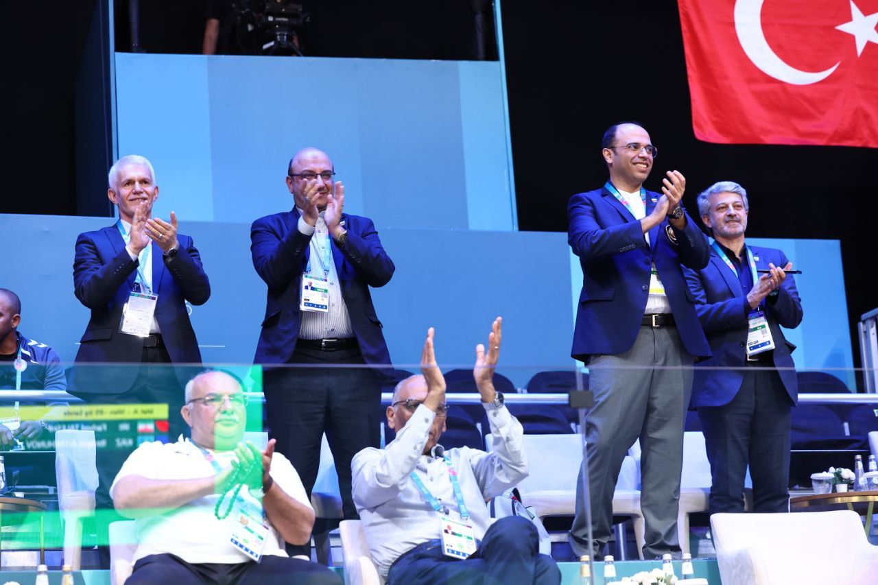 مقامات عالی رتبه ورزش ایران پس از گفتوگو با یکدیگر به تماشای مبارزات نمایندگان کشورمان نشستند.