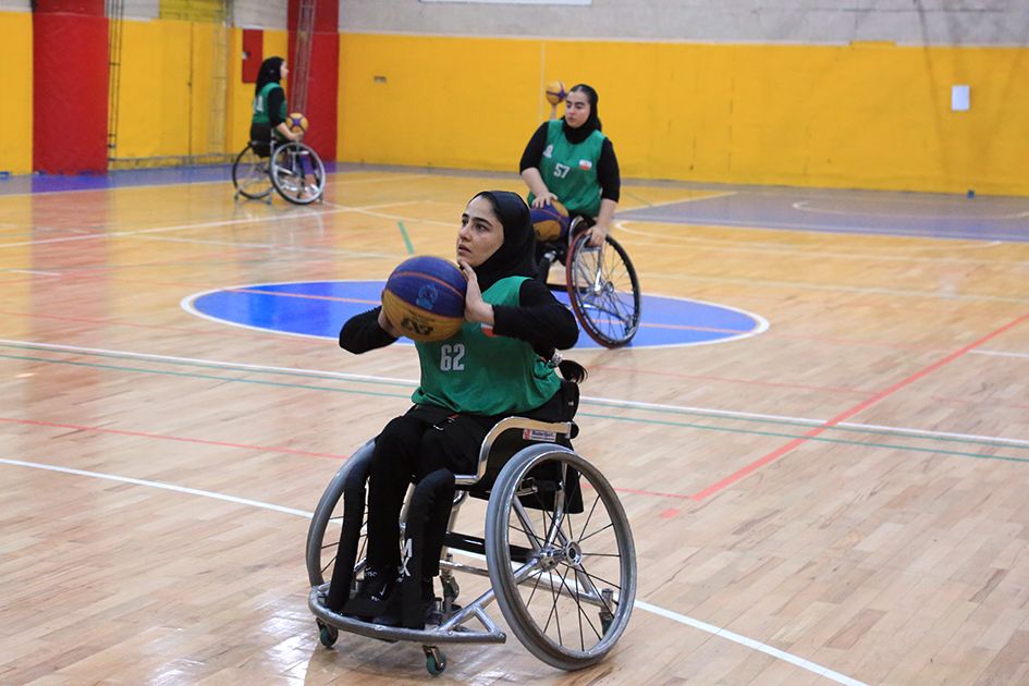 روایت تصویری از تمرینات تیمملی بسکتبال با ویلچر ۳ نفره بانوان